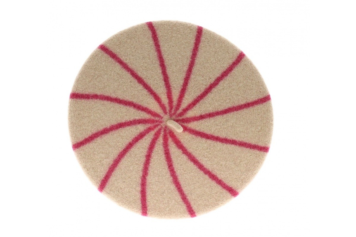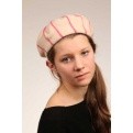 A beret with a natural background with some pink stripe.